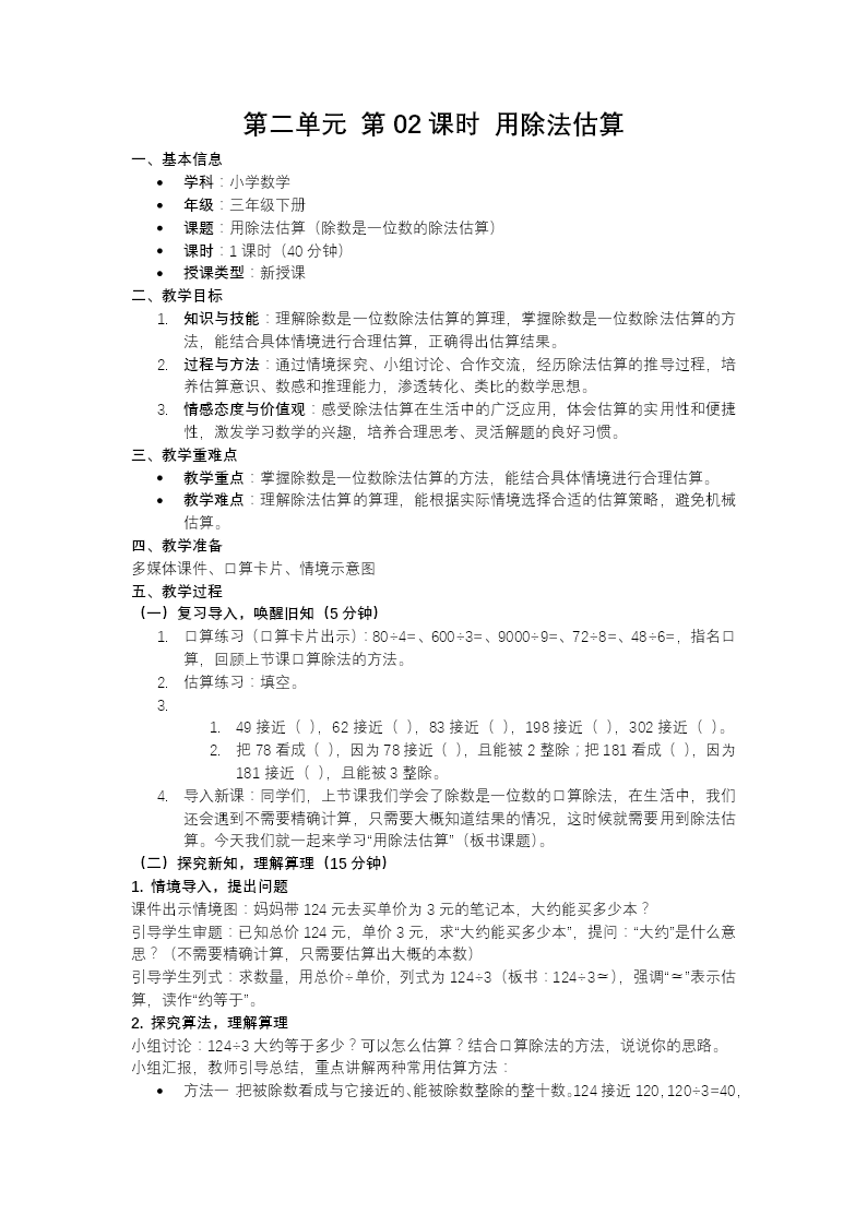 新教材三年級(jí)數(shù)學(xué)下冊(cè)人教版第二單元 第02課時(shí) 用除法估算PPT課件(含教案+學(xué)習(xí)任務(wù)+分層作業(yè))